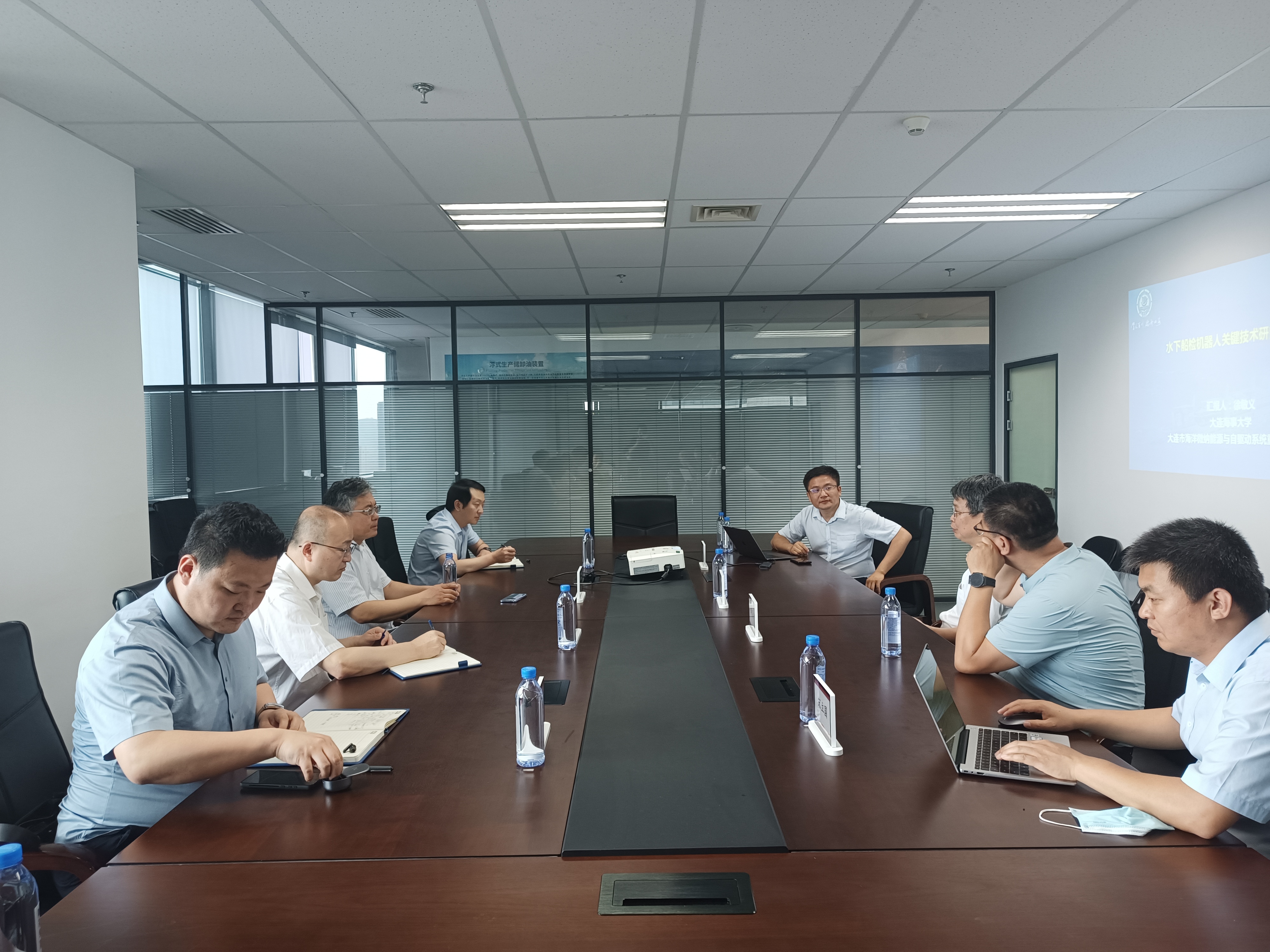 6月29日下午,新葡萄88805官网与中国船级社大连分社围绕水下船检机器人的市场前景、技术难点、规范标准等工作在海创大厦开展合作座谈。中国船级社大连分社副总经理刘铁波及营运船舶检验处和船用产品检验处相关领导,新葡萄88805官网院长林叶锦、党委书记毕鹏杰,以及相关教师和学生代表参加了座谈会。